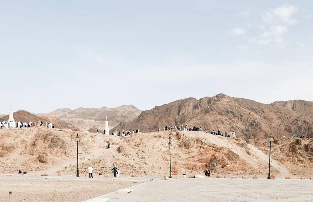 Mount of Uhud is located in the north of Madinah (Medina), Saudi Arabia. Jabel Uhud in Arabic means Mount Uhud. It is the place where the battle of Uhud took place. Prophet Muhammad PBUH and his followers loved Uhud mountain, and Uhud mountain loved the Muslims. Our Prophet made (the area) in between these two mountains (of Medina) a sanctuary. Therefore do not kill any animals or harm them. Do not damage the trees.