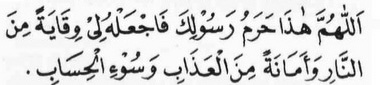 Allahumma Haza haramu Rasoolika faj"alhu li wiqaaytan minan naari wa amaanatan minal azaabi wasoo il hisaab.